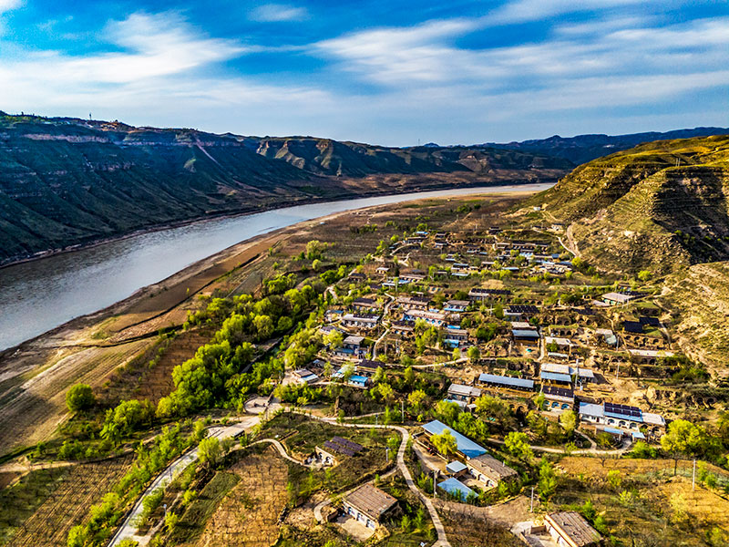 인더허촌은 융허현 건곤만향 서북부의 황하 기슭에 위치하고 있으며, 건곤만 풍경구에서 차로 15분 거리에 있으며, 건곤만에서 마을 풍경을 내려다볼 수 있는 유일한 마을이다.이전에는 오리하촌이라고 불렀는데 지금도 흉노식 움집이 보존되여있으며 마을의 전체적인 배치에도 중국의 전통적인 건축구조가 내포되여있다.음덕하촌은 4 각표지물인 주작의 발상지이다.